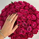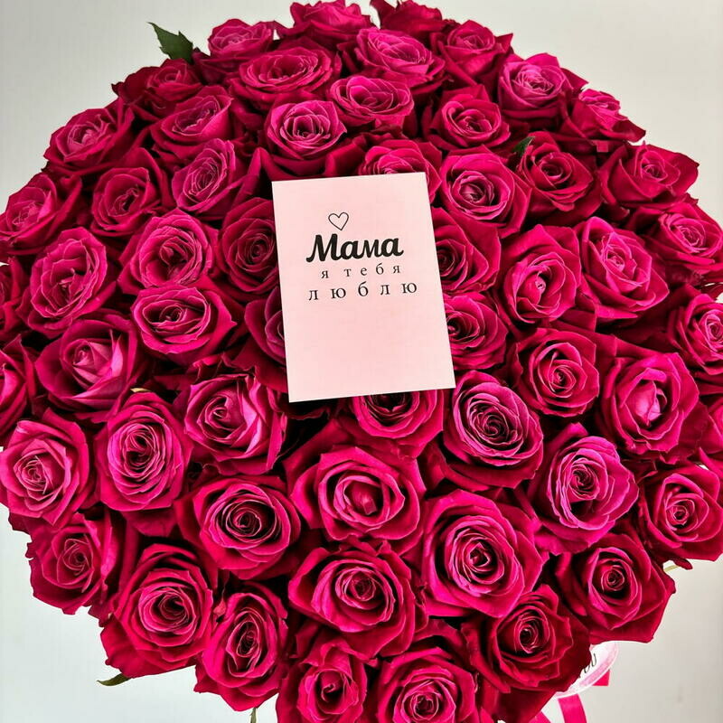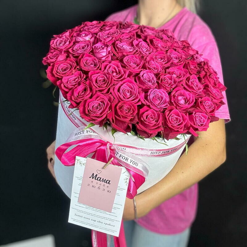 - Большой букет из роз Цветы в коробке. 55 роз фуксия в бархатной коробке с вашим фото ч/б