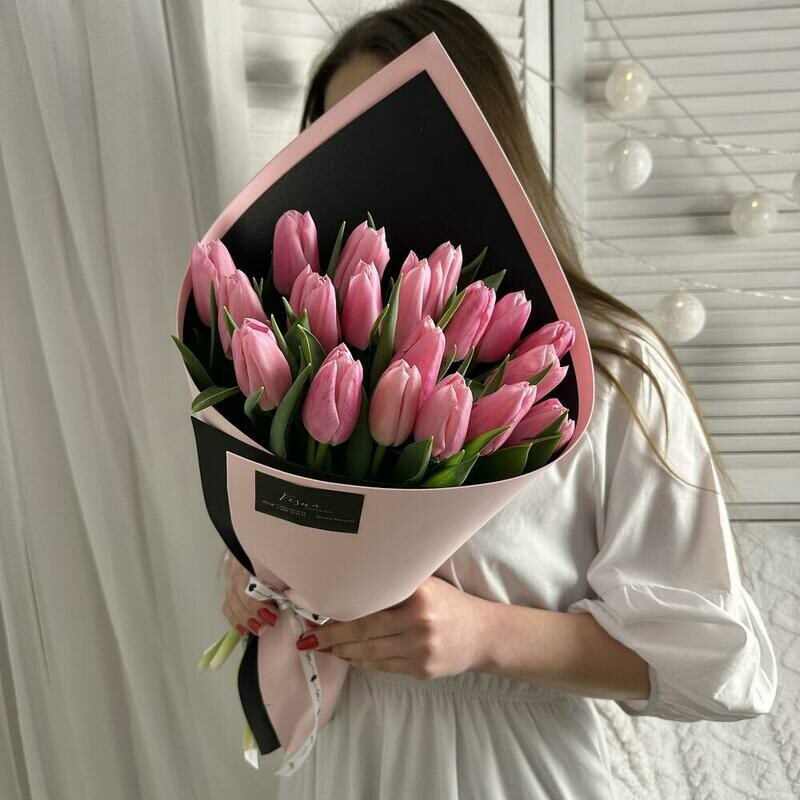 19 тюльпанов в дизайнерской упаковке, стандартный