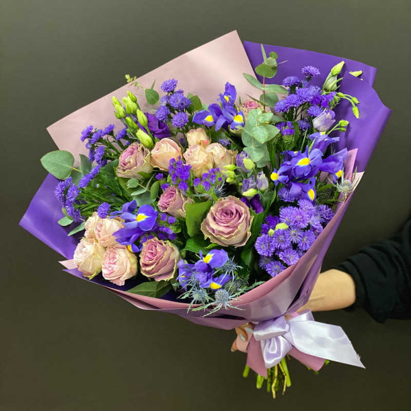 - Букет из астр, ирисов и роз