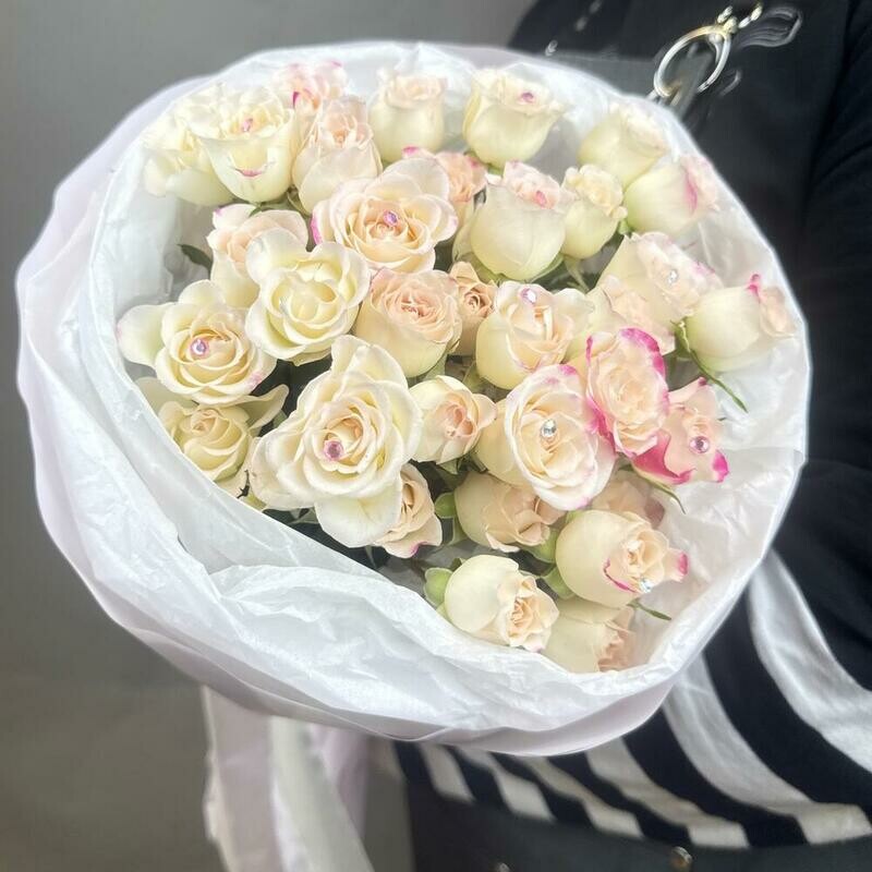 Монобукет из кустовых роз со стразами