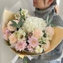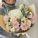 - Букет"Нежность (гортензия, диантусы, альстромерия, хлопок, хризантема кустовая,эвкалипт)