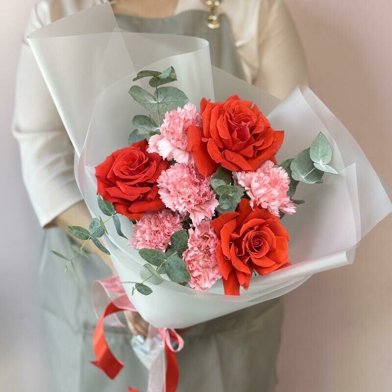- Авторский букет с розами и диантусами