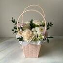 - Цветы в коробке"Комплимент"(роза, диантусы, альстромерия, хризантема кустовая)