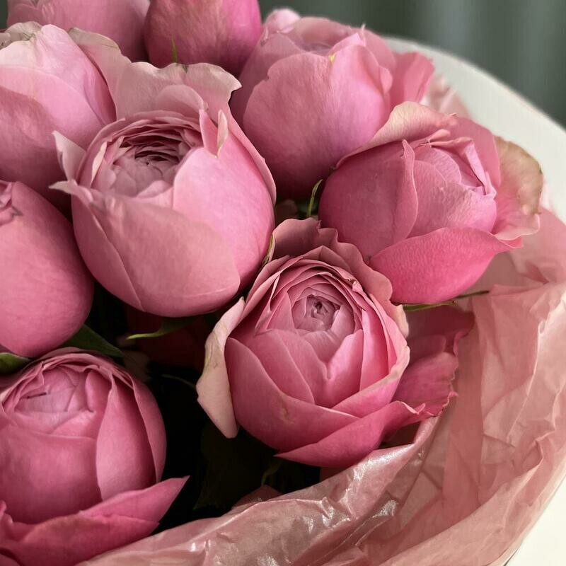 - Монобукет с розовой малиновой кустовой пион розой Сильва Пинк «Ягодки mini