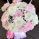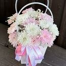 - Нежная композиция в сумочке из кустовой хризантемы