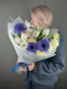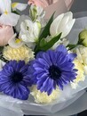 Букет с синими анемонами и тюльпанами