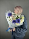 - Букет с синими анемонами и тюльпанами