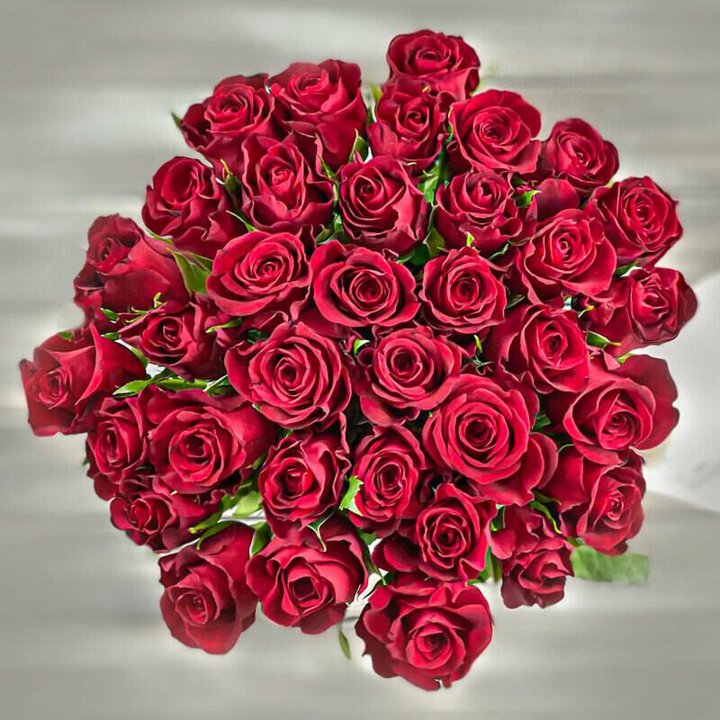 Букет из 39 красных роз с лентой Кения 40 см.