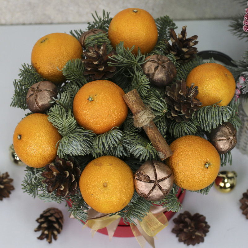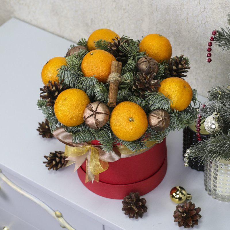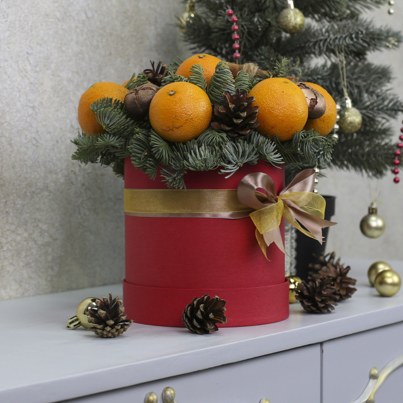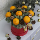Новогодний комплимент в коробке с мандаринами и нобилисом "Мандаринка"