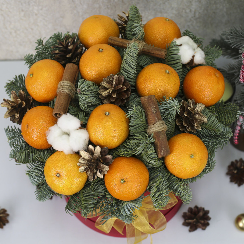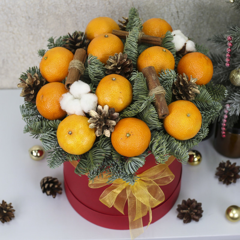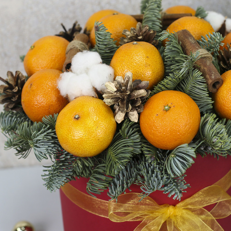 Новогодняя композиция в коробке с мандаринами и нобилисом "Глинтвейн", стандартный