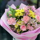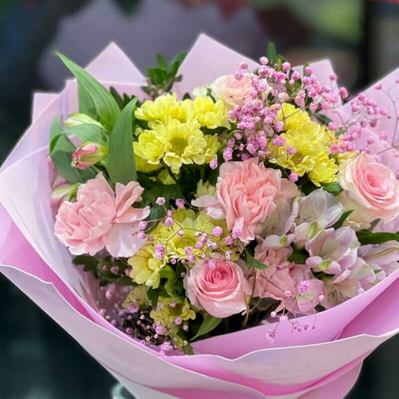 - Озеро воспоминаний Букет с розами, альстромерией и диантусами Розы
