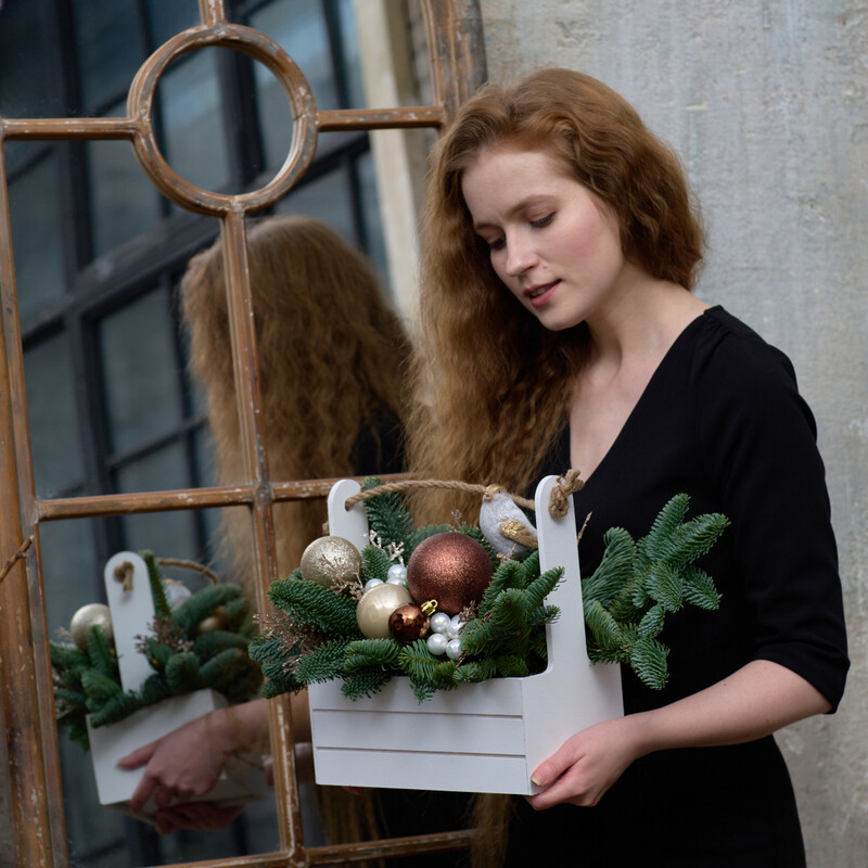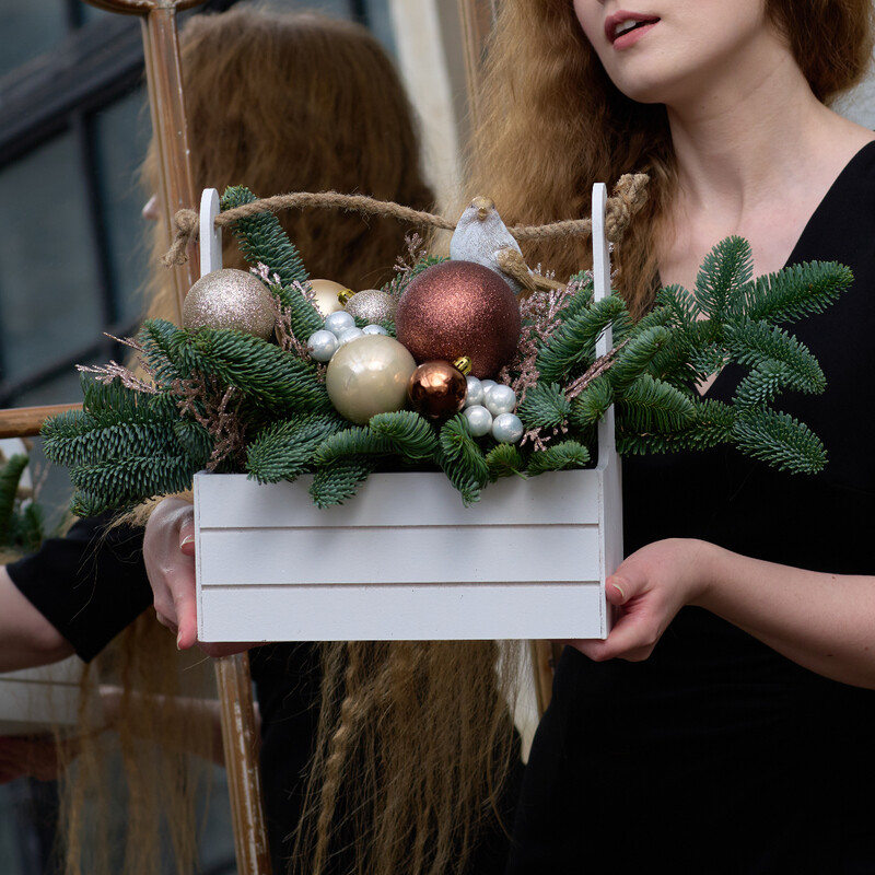 Зимняя композиция в деревянном ящике "Волшебная птица", стандартный