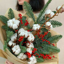 Зимний букет из веток живого нобилиса с хлопком и красными ягодами, стандартный