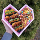 Подарочный набор из сухофруктов, стильной коробке в форме сердца, идеален в качестве комплимента. Такой презент подойдет как мужчине так и женщине, так же таким съедобным букетом можно порадовать преподавателя , коллегу или родственников! Главное преимущество этих сладостей - их длительный срок хранения! Особенно понравится тем кто придерживается правильного питания! Каждый сладкий подарок изготавливается с любовью, для каждого клиента. Это вкусный презент для любого праздника и для любого возраста, для девочки, девушки, мамы, бабушки, подруги, учителя, сестры, на юбилей, день рождения, 14 февраля, 8 марта,выписка из роддома, именины, крестины, годовщину свадьбы, или просто как комплимент. Подарочный набор из сладостей прекрасно заменит букет из цветов и стандартную коробку конфет в качестве презента.
