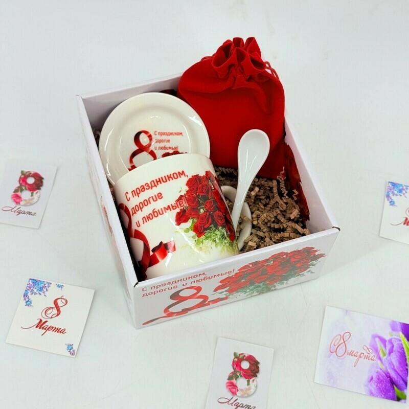 Подарок на 8 марта женщине, коллеге. Подарочный набор керамическая кружка и чай в мешочке, стандартный
