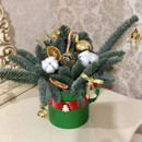 Новогодний букет в шляпной коробке из нобилиса, стандартный