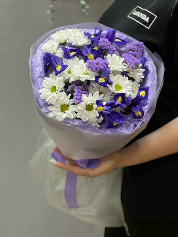- Сборный букет из ирисов и хризкнтем