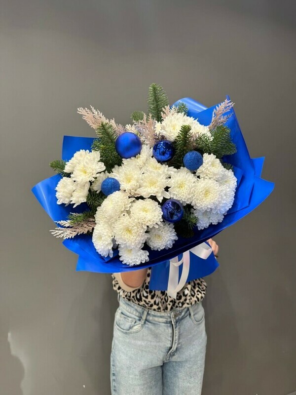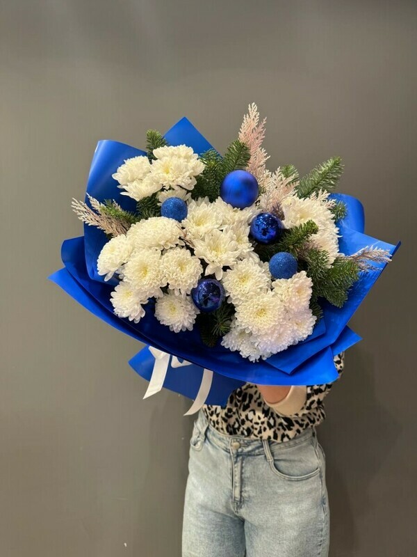 - Букет из нобилиса, кониферна и кустовой хризантемы
