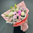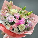 - Букет из лилий, кустовой хризантемы и роз