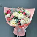 - Букет из французской розы и одноголовой хризантемы