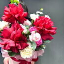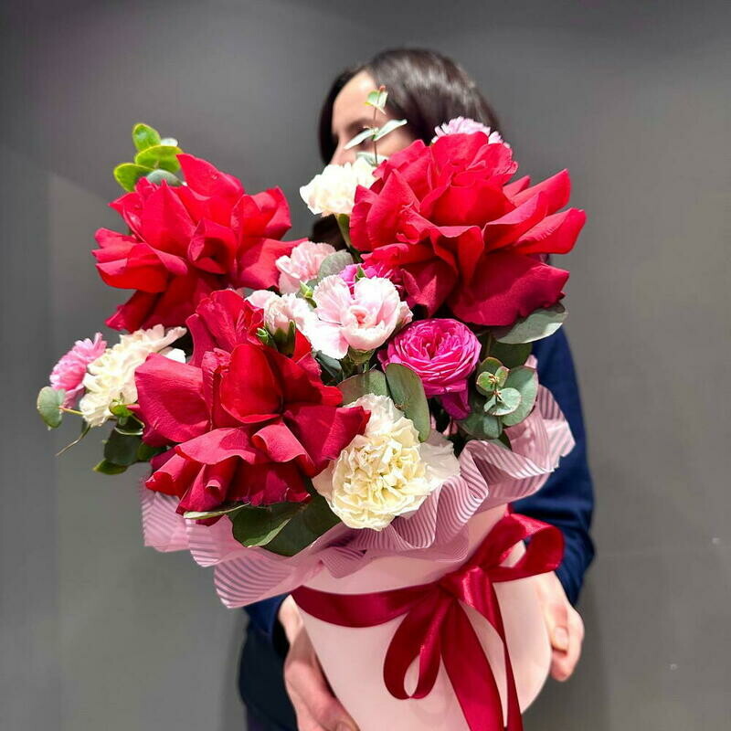 - Композиция с французскими розами и кустовыми диантусами