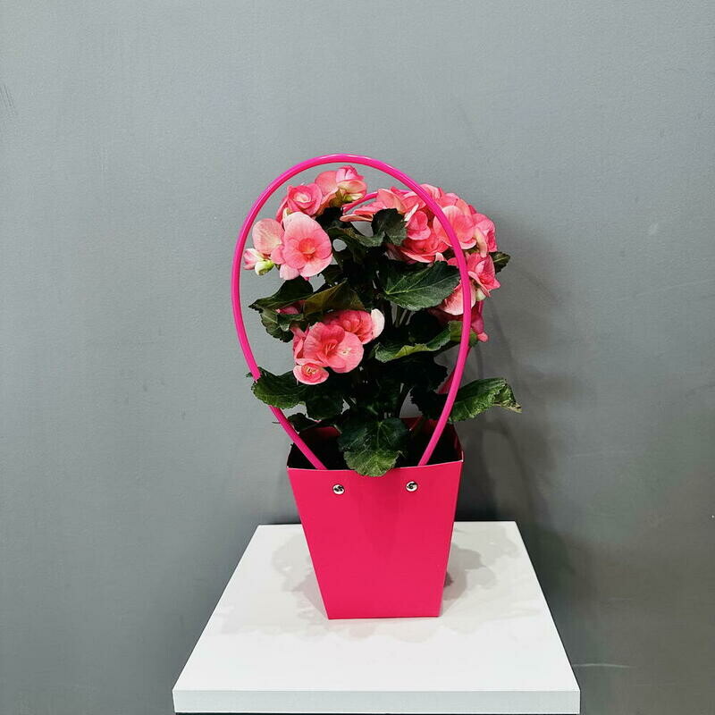 Бегония розовая в подарочной сумочке