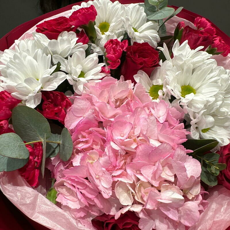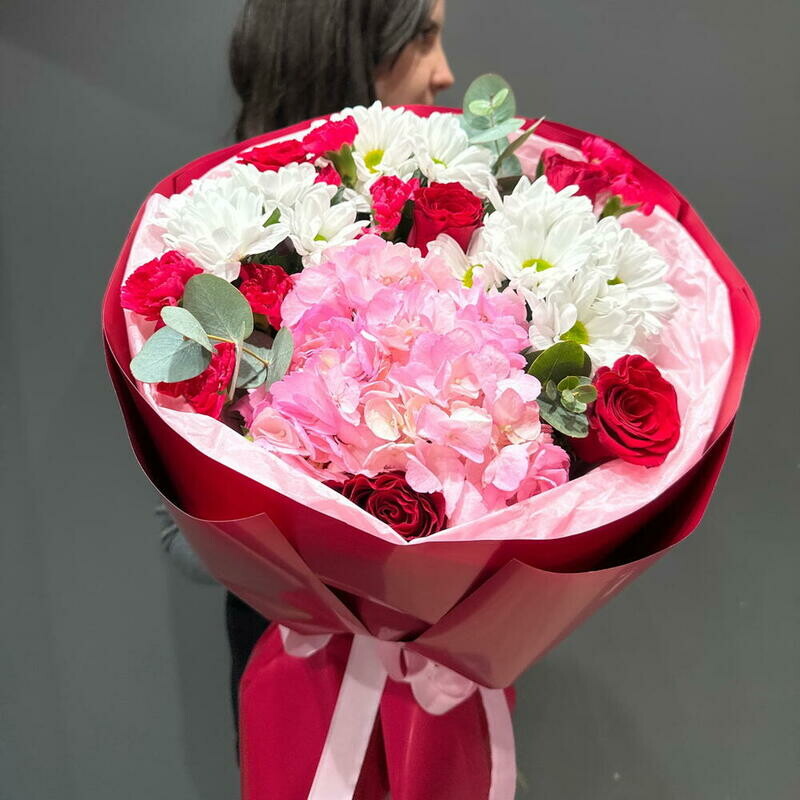 - Букет с гортензией и розами