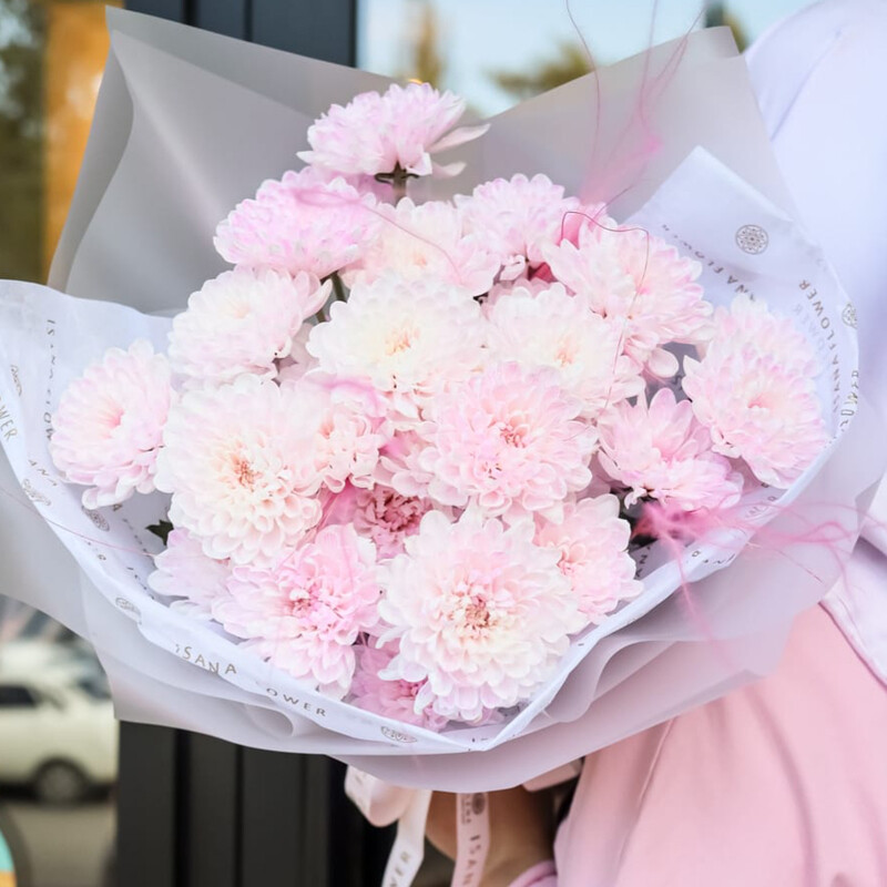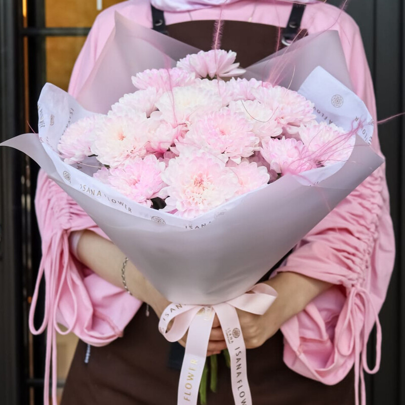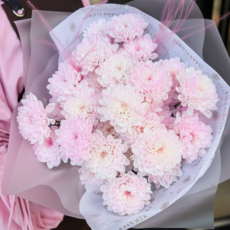 Розовая хризантема кустовая