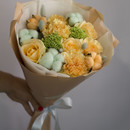 Милый букетик в кремовых тонах освежает мягкий хлопок мятного цвета. Заказав этот букет, вы передадите своё душевное тепло, любовь, нежность, ощущение доброты, заботы и уюта.