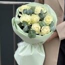Букет Белоснежка из 7 белых роз и эвкалипта