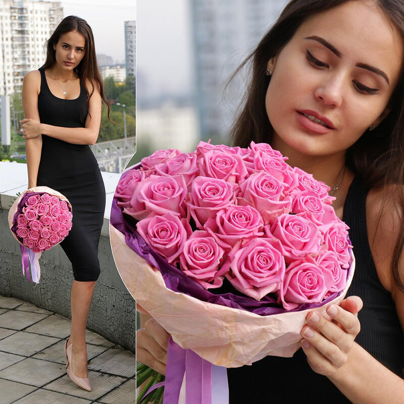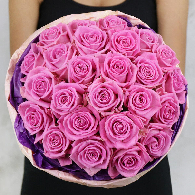 - Букет из 25 розовых роз Аква Россия 60 см.