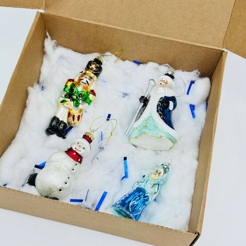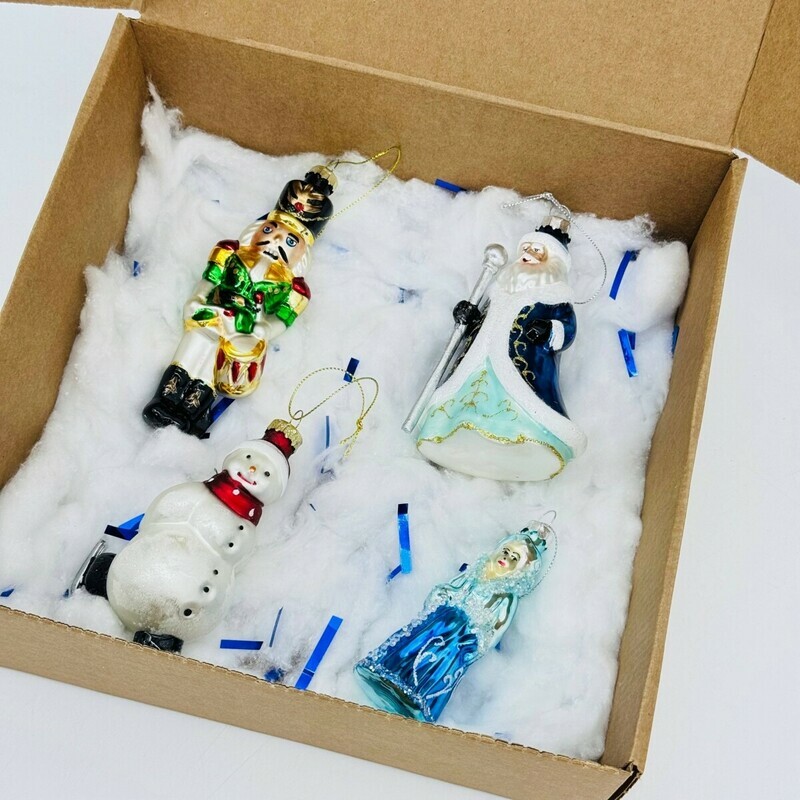 Набор ёлочных игрушек из стекла ручной работы. Ретро украшения для ёлки. Новогодний декор №10, стандартный