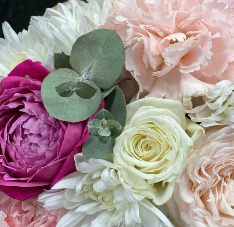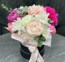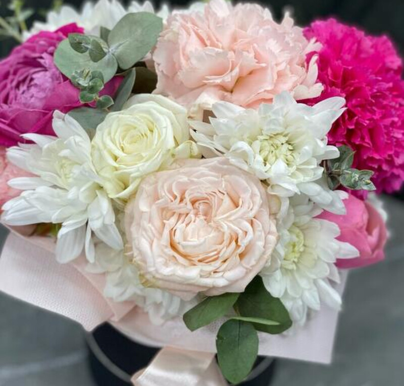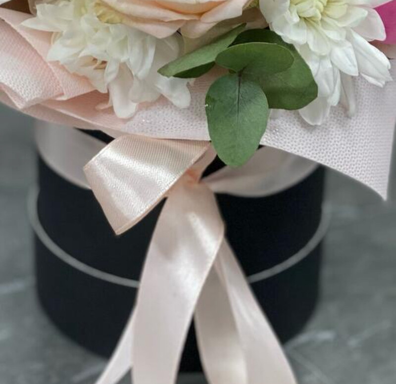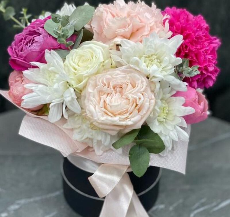 - Пионовидная роза и хризантема в коробке