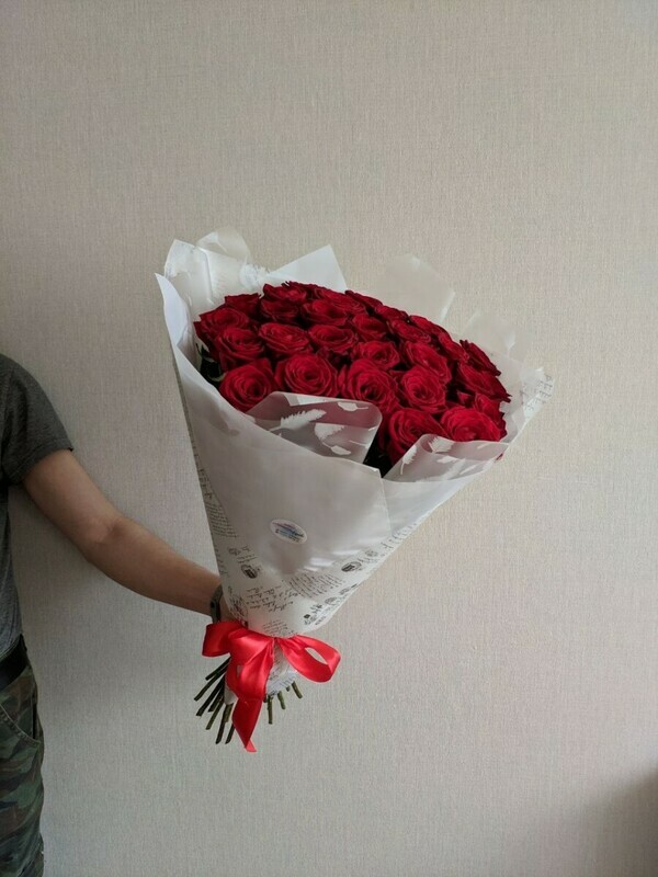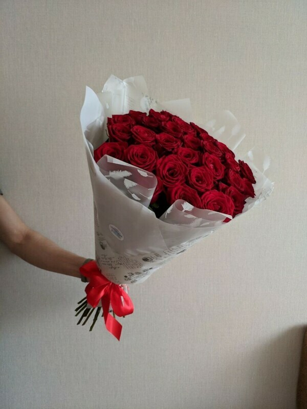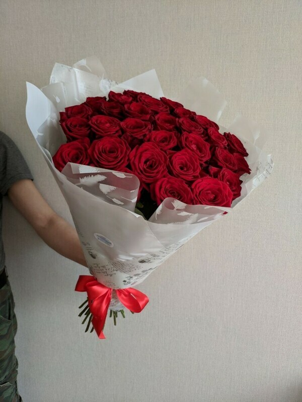 - Букет красных роскошных высоких роз