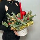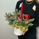 - Новогодняя композиция из нобилиса со свечкой в коробке