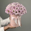 - Композиция в шляпной коробке с розовой кустовой хризантемой