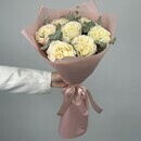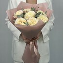 - Букет из 7 светло-розовых пионовидных роз с эвкалиптом