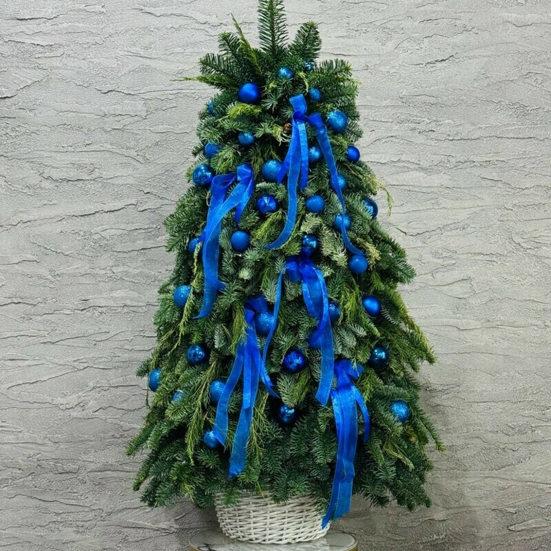 Ёлочка ручной работы из натуральной хвои нобилис 130 см в кашпо из искусственного ротанга