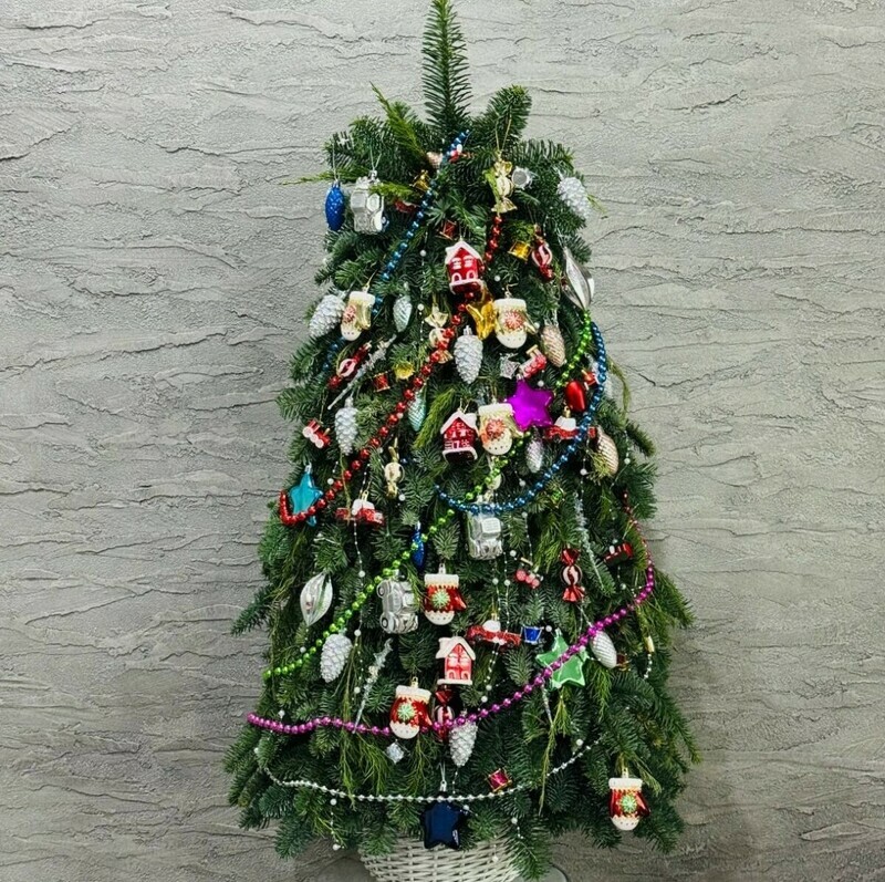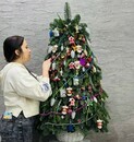 Новогодняя ёлка ручной работы из веток натуральной хвои нобилис в кашпо из искусственного ротанга