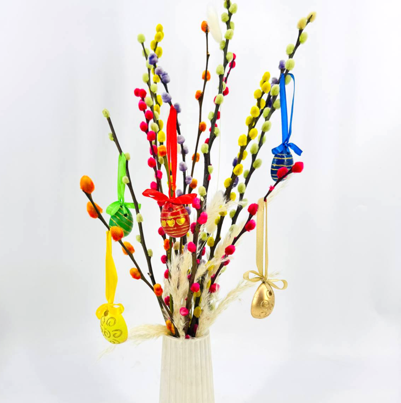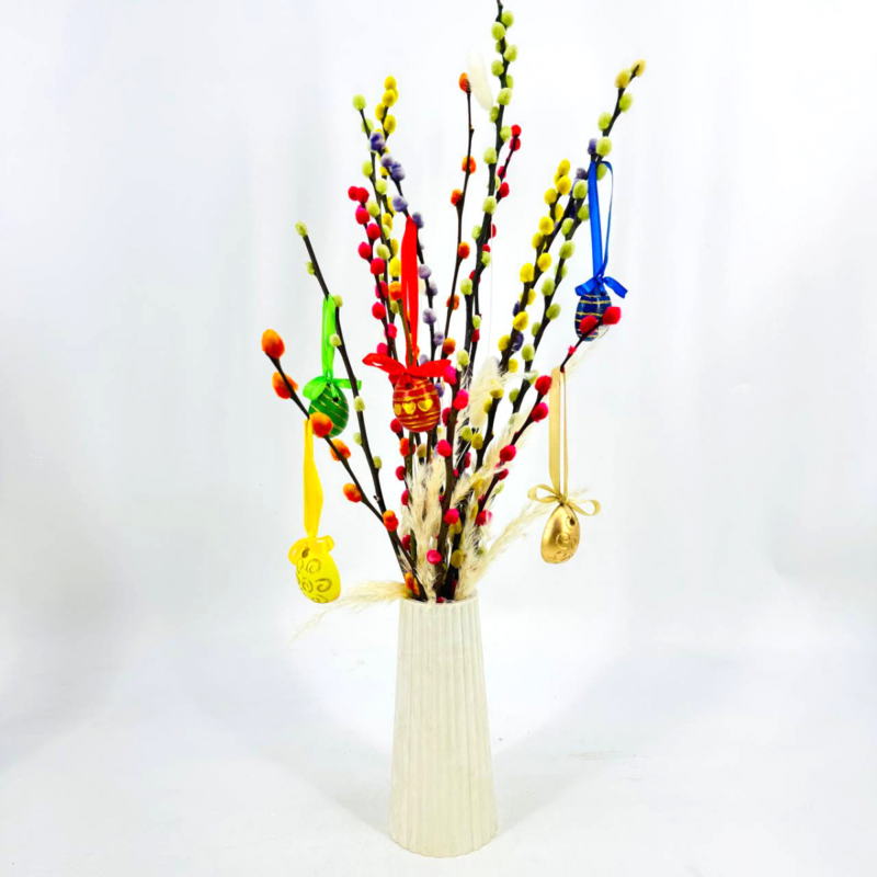 Пасхальная композиция из вербы в вазе. Верба живая красноталка крашеная. Вербный букет, стандартный