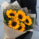 Букет с подсолнухами смотрится красиво, ярко, оригинально. В отличие от композиций из других цветов, они смотрятся необычно, каждый раз по-новому и свежо. Подсолнух ассоциируется с солнцем, летом, теплом, поэтому вызывает только положительные эмоции. Букет подсолнухов, станет простым, но при этом элегантным подарком для педагога на день учителя, мамы, жены, любимой девушки, для руководителя. Отличный подарок на День рождения, юбилей, 1 сентября, День знаний.