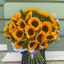 Букет с подсолнухами смотрится красиво, ярко, оригинально. В отличие от композиций из других цветов, они смотрятся необычно, каждый раз по-новому и свежо. Подсолнух ассоциируется с солнцем, летом, теплом, поэтому вызывает только положительные эмоции. Букет подсолнухов, станет простым, но при этом элегантным подарком для педагога на день учителя, мамы, жены, любимой девушки, для руководителя. Отличный подарок на День рождения, юбилей, 1 сентября, День знаний.