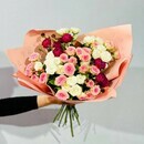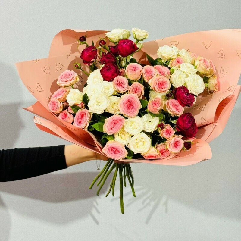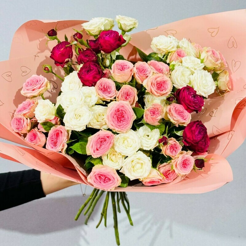 Восхитительный букет изящных кустовых роз – идеальный подарок на любое торжество! Эти ароматные цветы, оформленные в стильную упаковку, станут изысканным сюрпризом для вашей мамы, любимой девушки, учителя или дочки. Подарите красоту и нежность в день рождения, юбилей, именины, День Татьяны, выписку из роддома или на такие важные даты, как 8 Марта и 14 Февраля, Пасху. Вашему близкому человеку будет приятно ощутить весь восторг и тепло вашего внимания, укутанные в каждом бутоне этого элегантного букета!