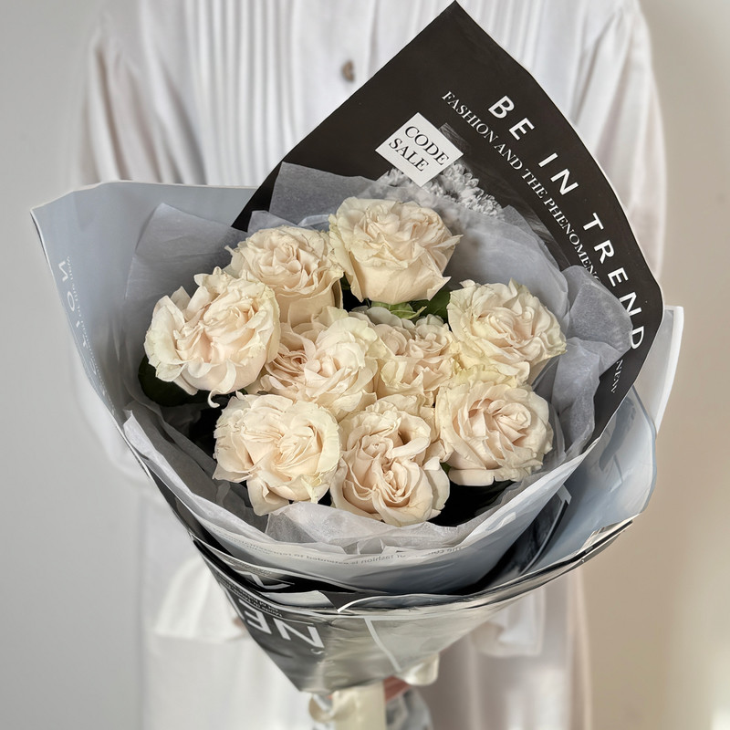 9 Французских Кремовых Роз 70 см, 9 роз