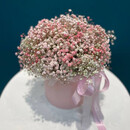 Розовая гипсофила в круглой коробочке