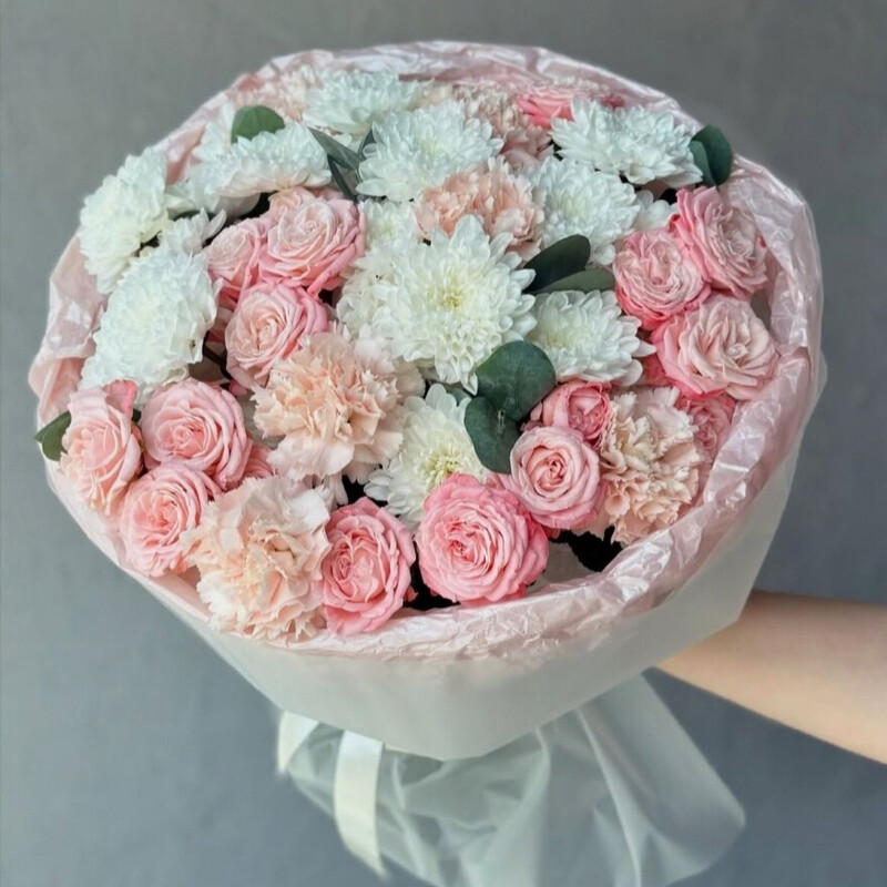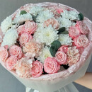 Авторский букет «Мечта» — гармоничное сочетание кустовой хризантемы, розы и гвоздики. Элегантная композиция, оформленная атласной лентой, станет прекрасным подарком для близких. Подходит для любых случаев и выражает самые тёплые чувства.