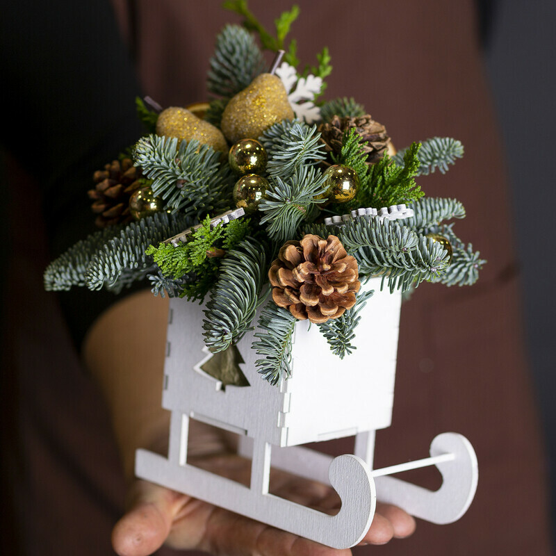 Кашпо деревянное санки