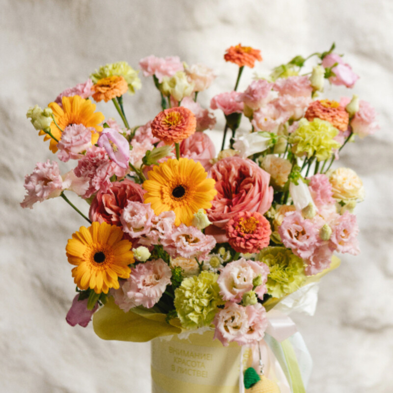 Удобная переноска – доставляем букет в фирменном пакете, который защищает цветы и делает транспортировку комфортной.