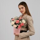 - Цветы в коробке диантусы с эвкалиптом