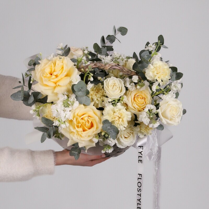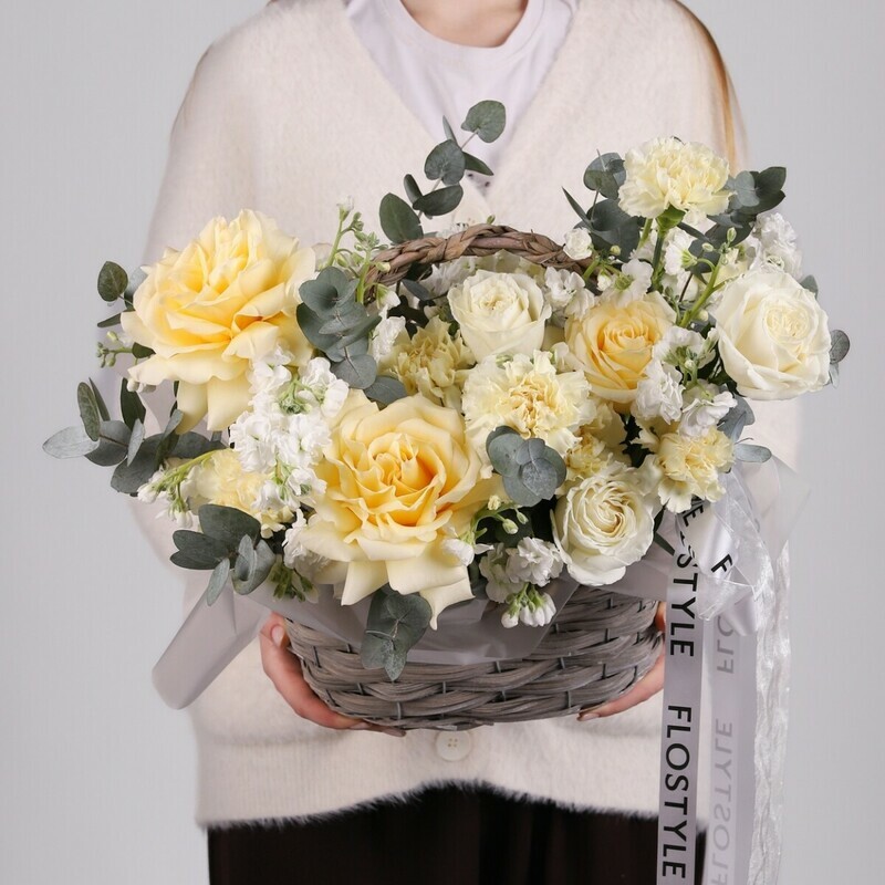 Плетенная корзина с пионовидными розами